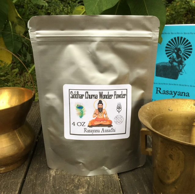 In the Vedic and Siddha traditions this is part of a extensive traditional detoxification(Panchakarma), Kayakalpa (an ancient system for total body healing and rejuvenation. These are the Rasayana therapies of classical Ayurveda, but with a different, more specific goal: extending the lifespan, even immortalizing the body, of the advanced spiritual aspirant, to enable attainment of the goal of moksha – spiritual liberation – in this lifetime, in this body. This is the true alchemy, the saturation of the body with the tonic herbs that builds a secret fire. This is harnessed with the skillful means (upaya) and aimed with the Master Narrative, the initiatory Tradition. These herbs were usually only for royals or elite Siddha sages, and they are still limited in the small batches we can make at a time and humbly dispense for those to add to their healing protocols.